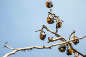 During the day, bats shelter in a roost or a dark place large enough to hold them. Many bats make their roost in areas like roof spaces, under tiles, hollow trees, loose bark, tree branches or split tree trunks. A roost can be made up of any number of bats at one time. For example, a roost may hold only one individual bat or as many as 50 if it is a maternity roost[iv].