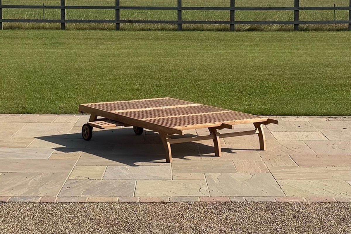Built with longevity in mind, the double lounger features durable, weather-resistant teak that naturally withstands the elements and develops a beautiful silvery patina over time. The rear wheels offer easy manoeuvrability, allowing you to follow the sun—or the shade—throughout the day. Its smooth, hand-sanded finish and classic slatted construction provide both style and ventilation for warm summer days.