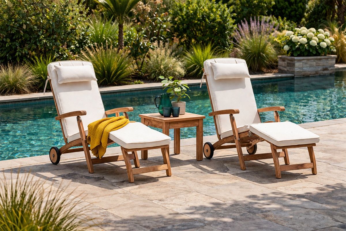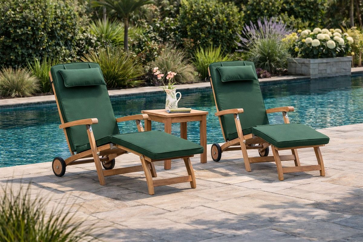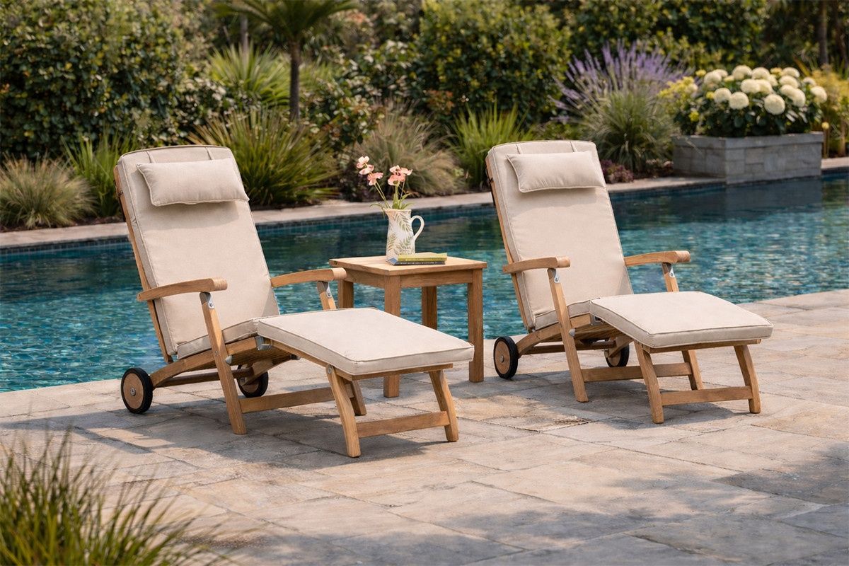Beyond its residential charm, the Burnham Teak Steamer Chair Set is ideally suited for commercial environments such as boutique hotels, luxury spas, and poolside lounges. Its robust construction ensures it can withstand frequent use without compromising on style or comfort, making it a practical investment for high-end hospitality settings. The classic yet versatile design allows it to integrate seamlessly into a wide range of outdoor aesthetics, from contemporary terraces to traditional gardens. The compact yet functional side table enhances usability in shared or private spaces, while the premium cushions provide a welcoming, luxurious experience for guests. Whether used to create a tranquil retreat or to elevate a professional outdoor setting, the Burnham set delivers both visual impact and lasting performance.